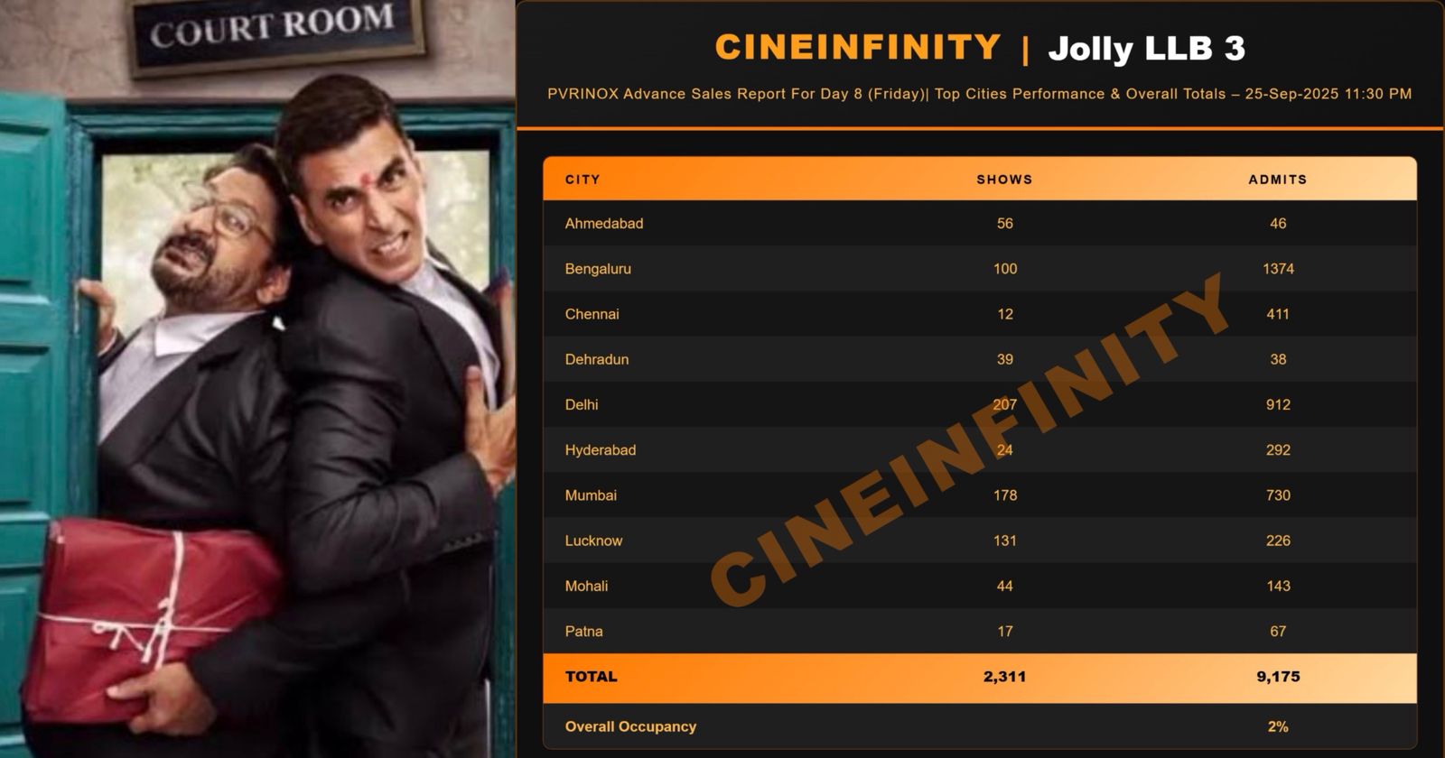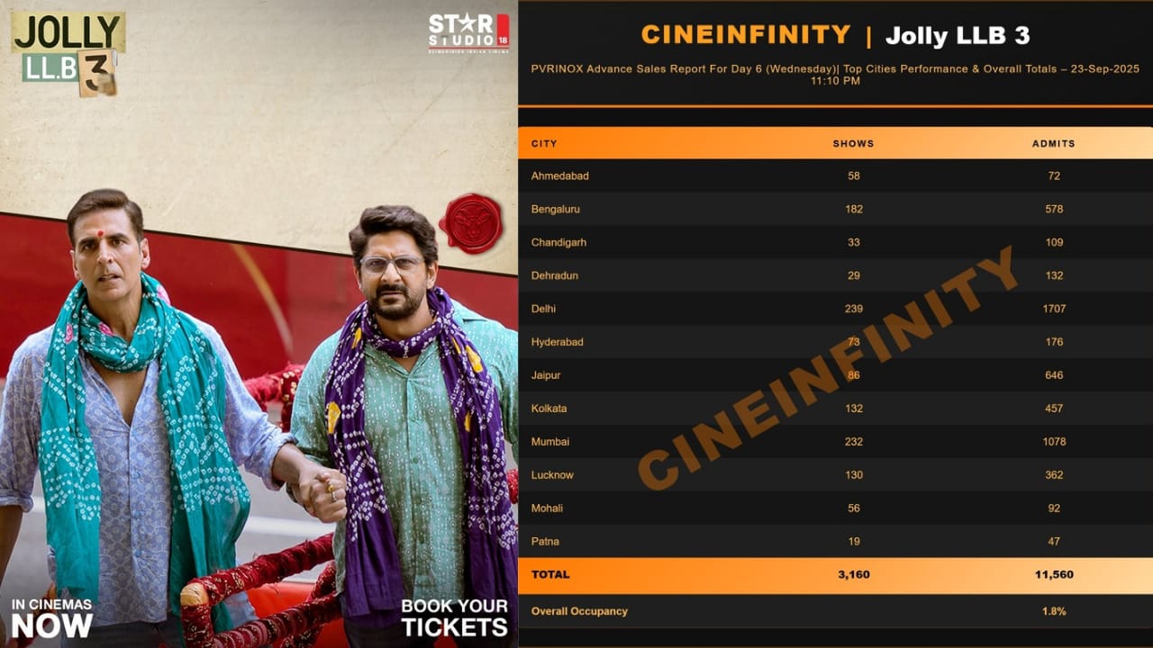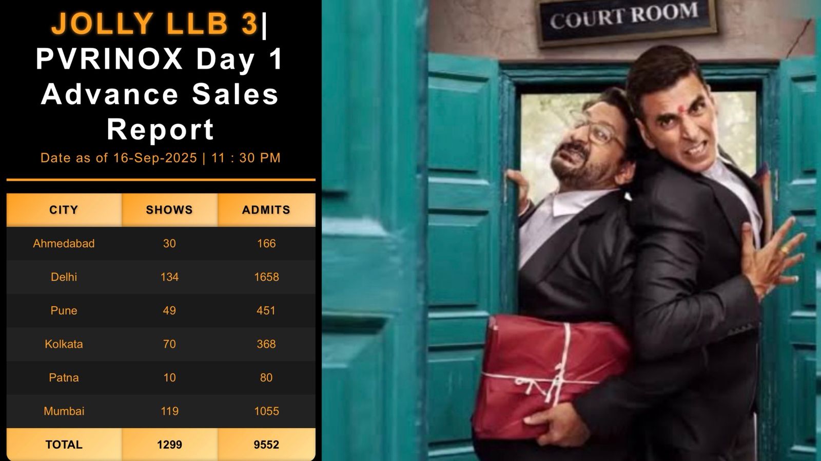 Articles Jolly LLB 3 Box Office Advance Booking Report - Struggles to Take Off Amid PVRINOX pulling shows. Admin 2025-09-18 0