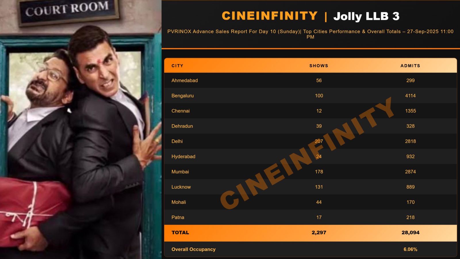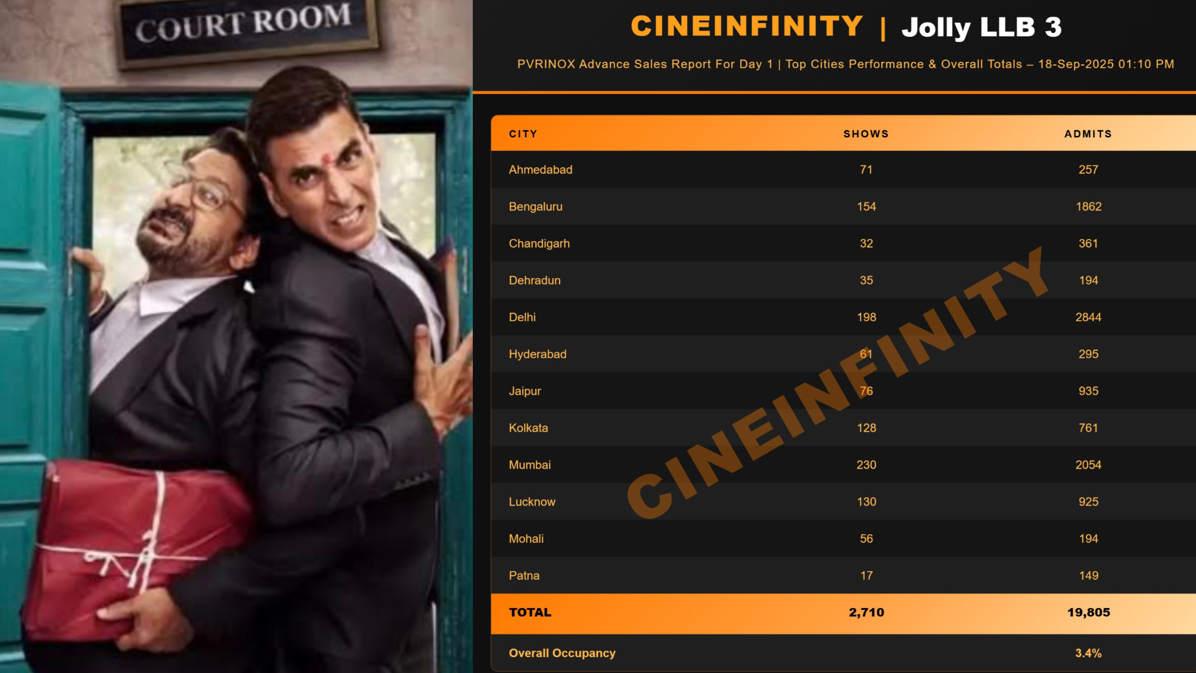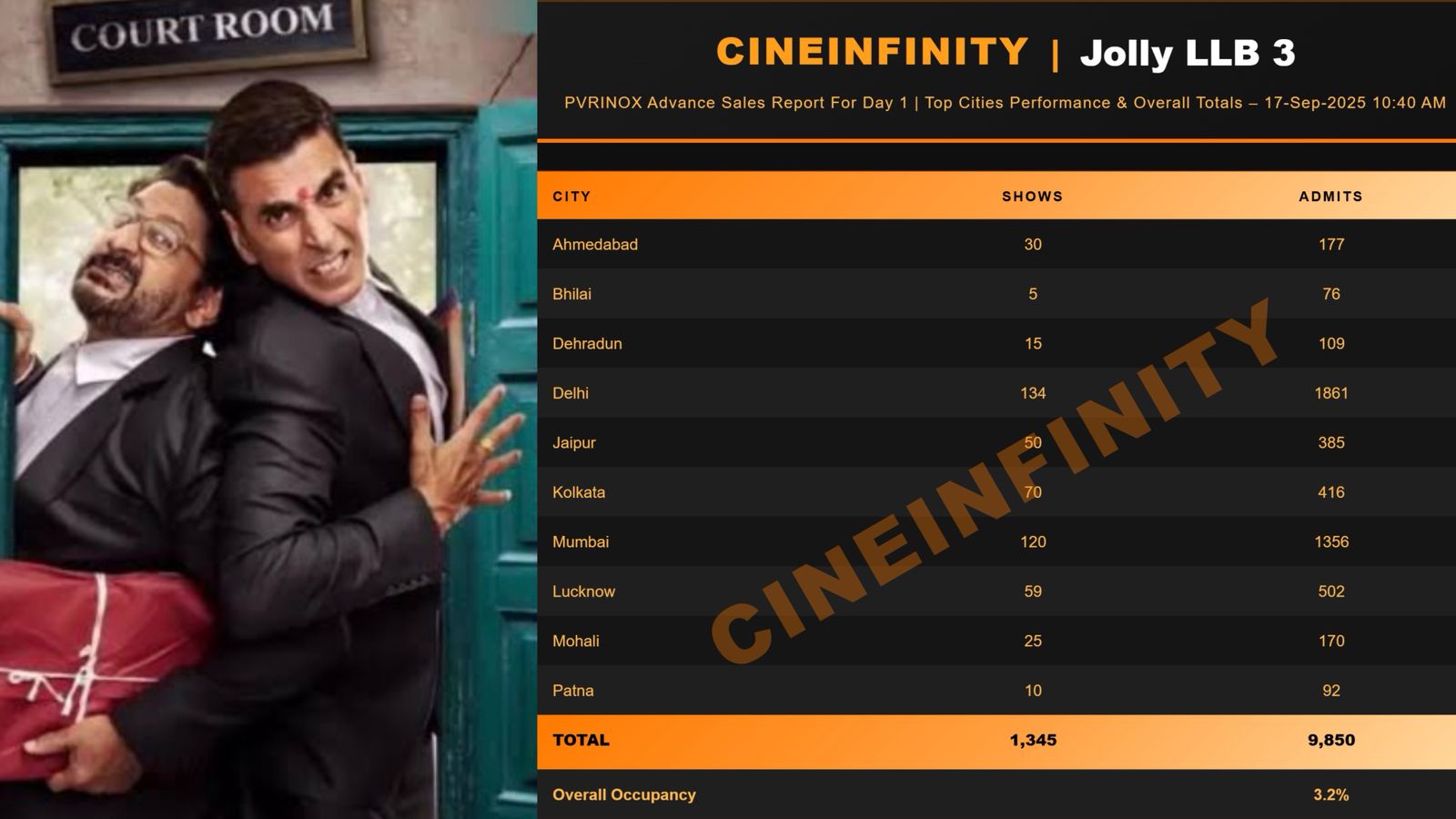 Articles Jolly LLB 3 Box Office Advance Booking Report - Struggles to Take Off Amid PVRINOX pulling shows. Admin 2025-09-18 0