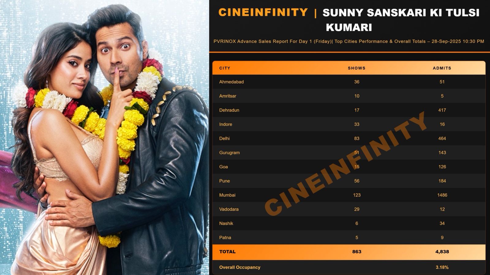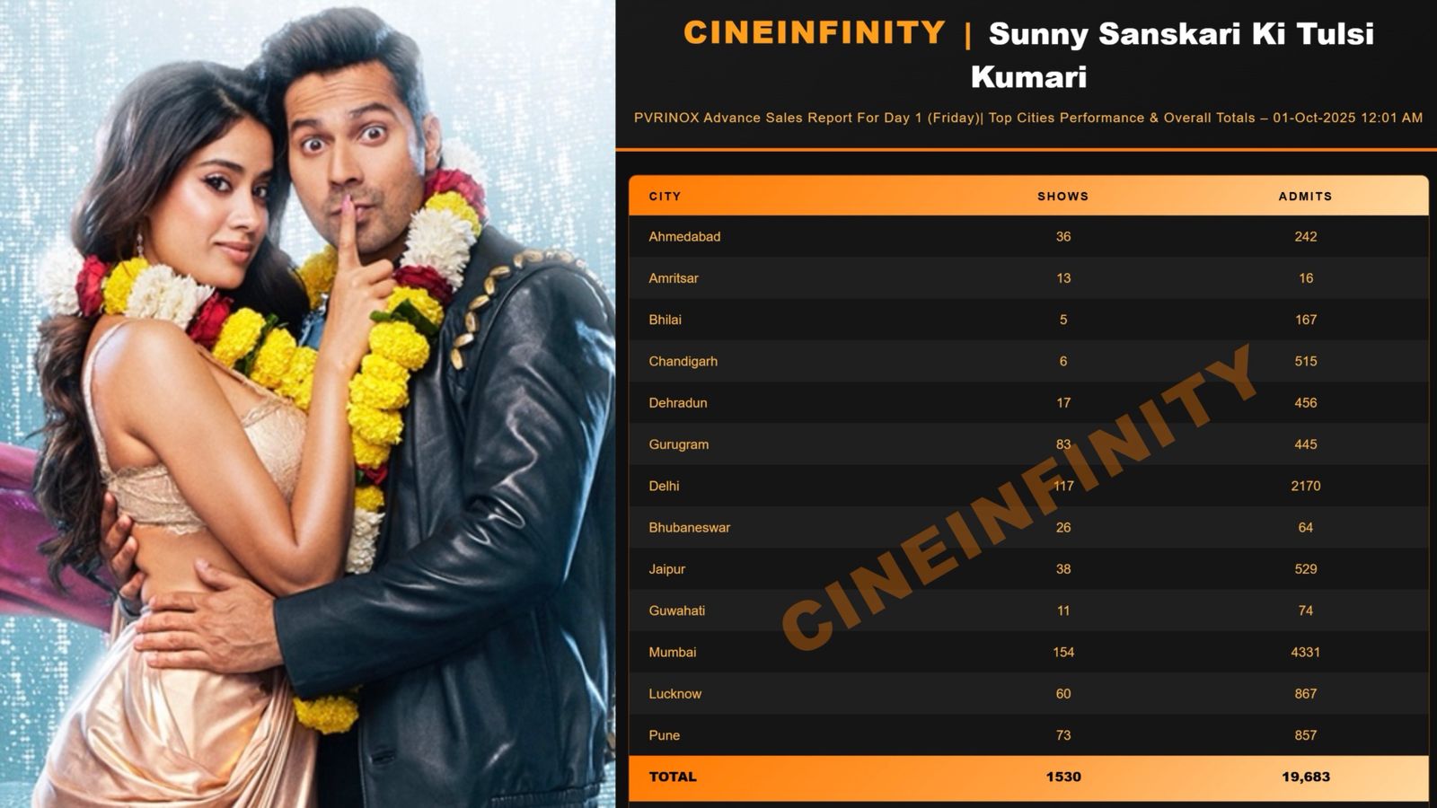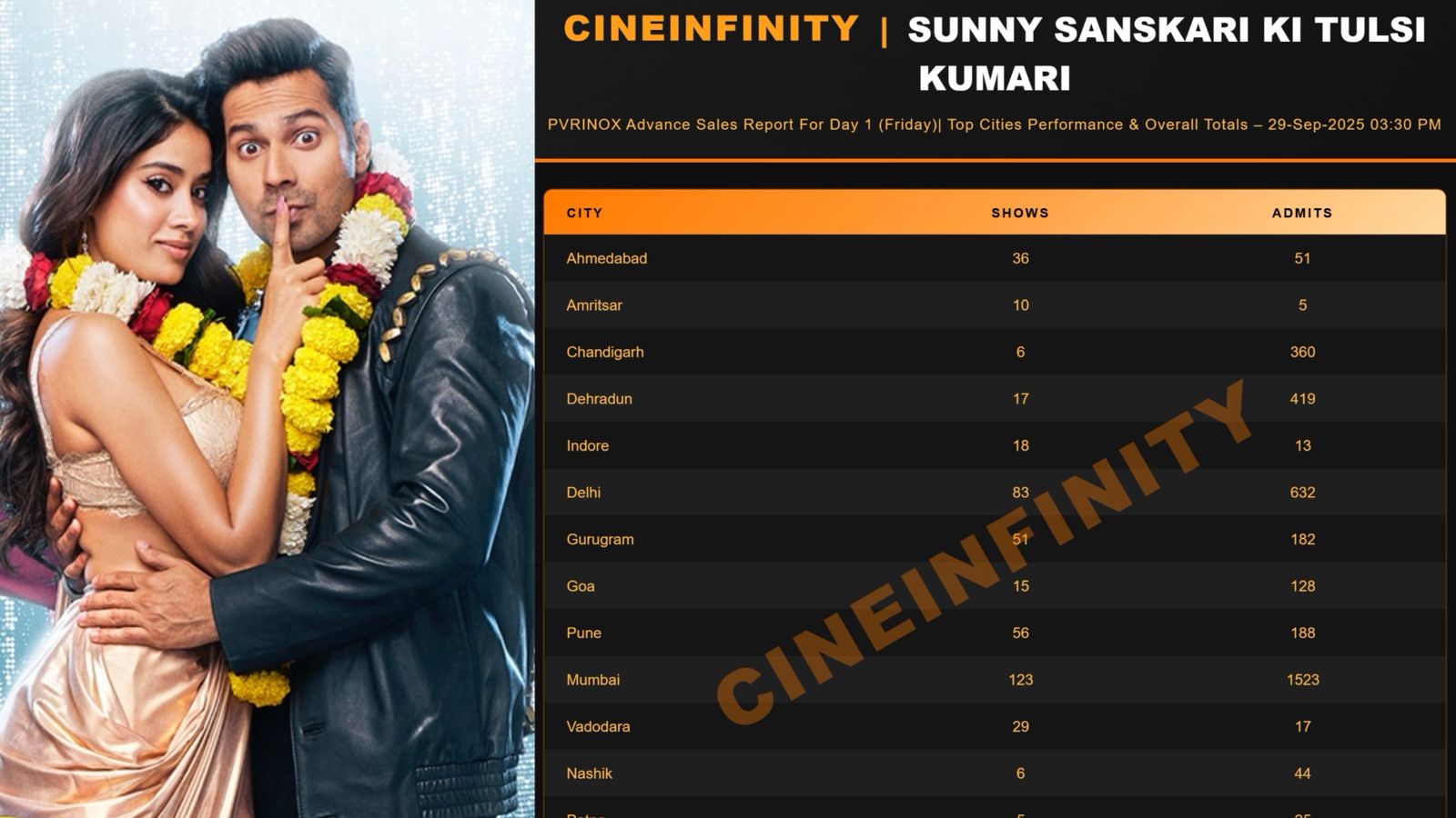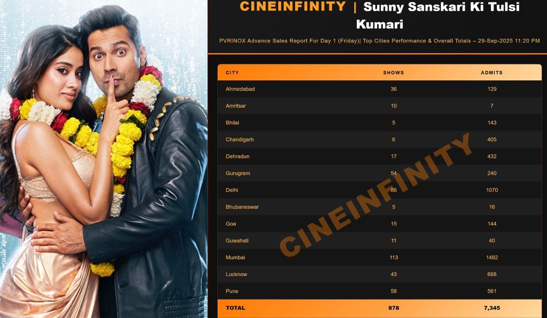 Articles Sunny Sanskari Ki Tulsi Kumari Day 1 Advance Booking Update: 16K+ Tickets Sold by 5 PM In PIC, Sluggish Trend Despite Holiday Window Admin 2025-09-30 0