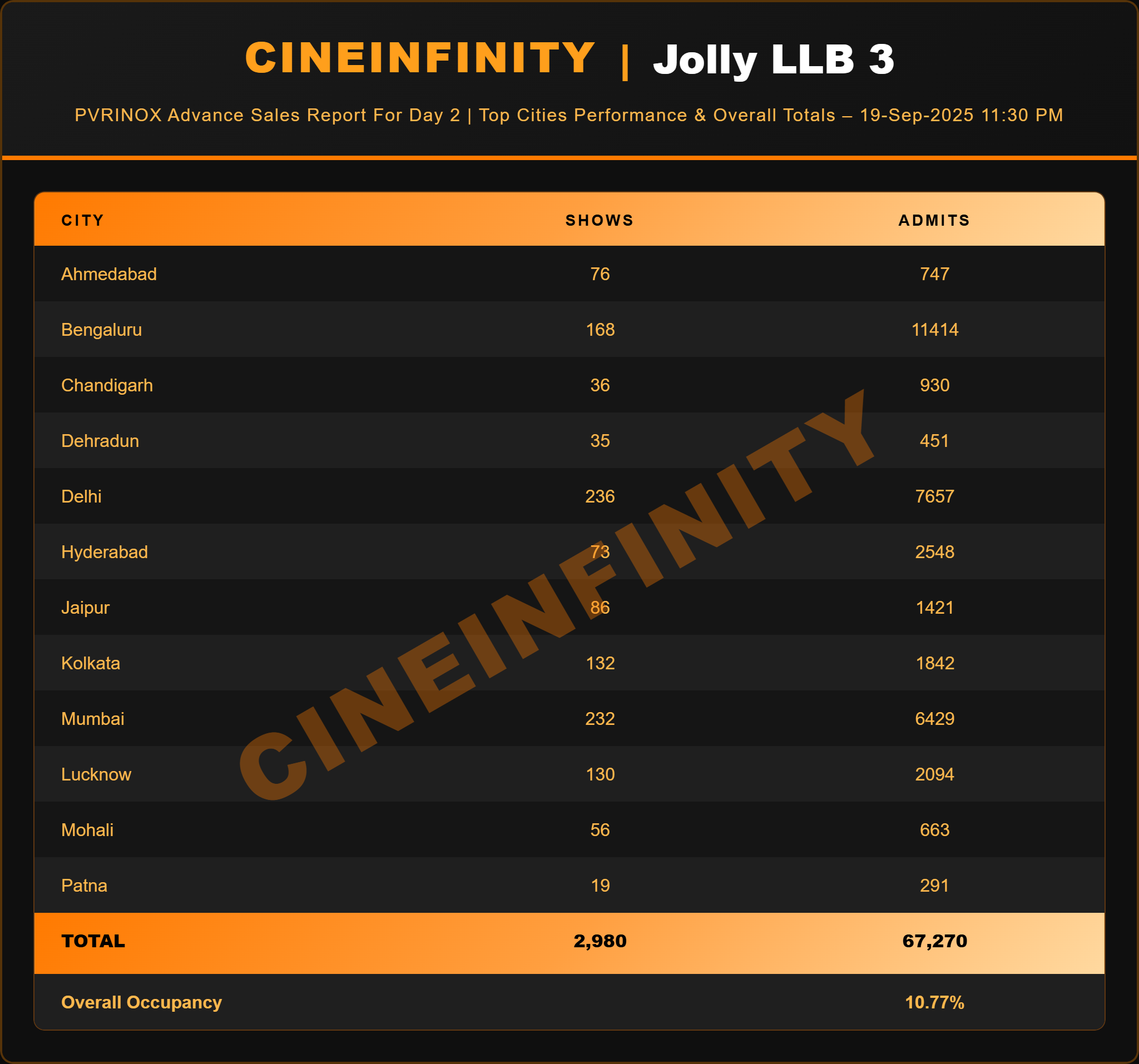 Bengaluru continues to be the biggest contributor with over 11,000 tickets already sold in advance, showing excellent traction. The city is driving the film’s advance sales and leading the national circuit with strong occupancy.