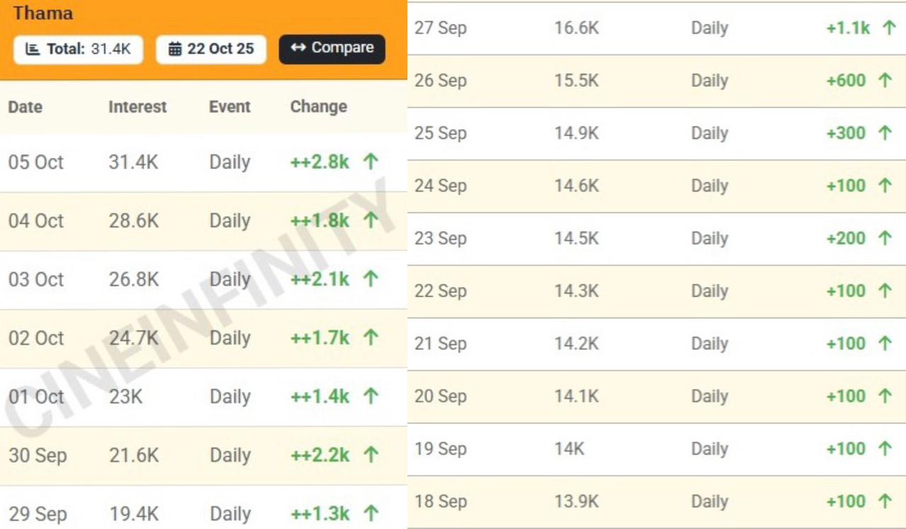 Maddock Films has built a strong brand with its horror-comedy universe, known for its unique blend of scares and laughs. Yet Thamma hasn’t managed to generate the same curiosity or discussion that Stree or Munjya did. While it enjoys decent visibility on BookMyShow listings, the trending pattern looks more like a regular release than a major festive film.